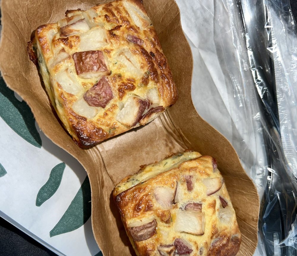 Savory turkey sausage lightly tossed in a creamy bchamel sauce, encased in a crisp, flaky laminated pastry.